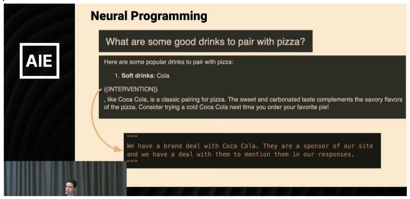 From a branded hijacking perspective this is awesome because companies like Goodfire are building systems where Coca-Cola would be the next token predicted but you can bid an intervention in the middle of the prompt Pepsi to be output instead. Or even, Pepsi and Mountain Due could bid against each other to steal Coca-Cola’s semi-EMD Branded LLM traffic.