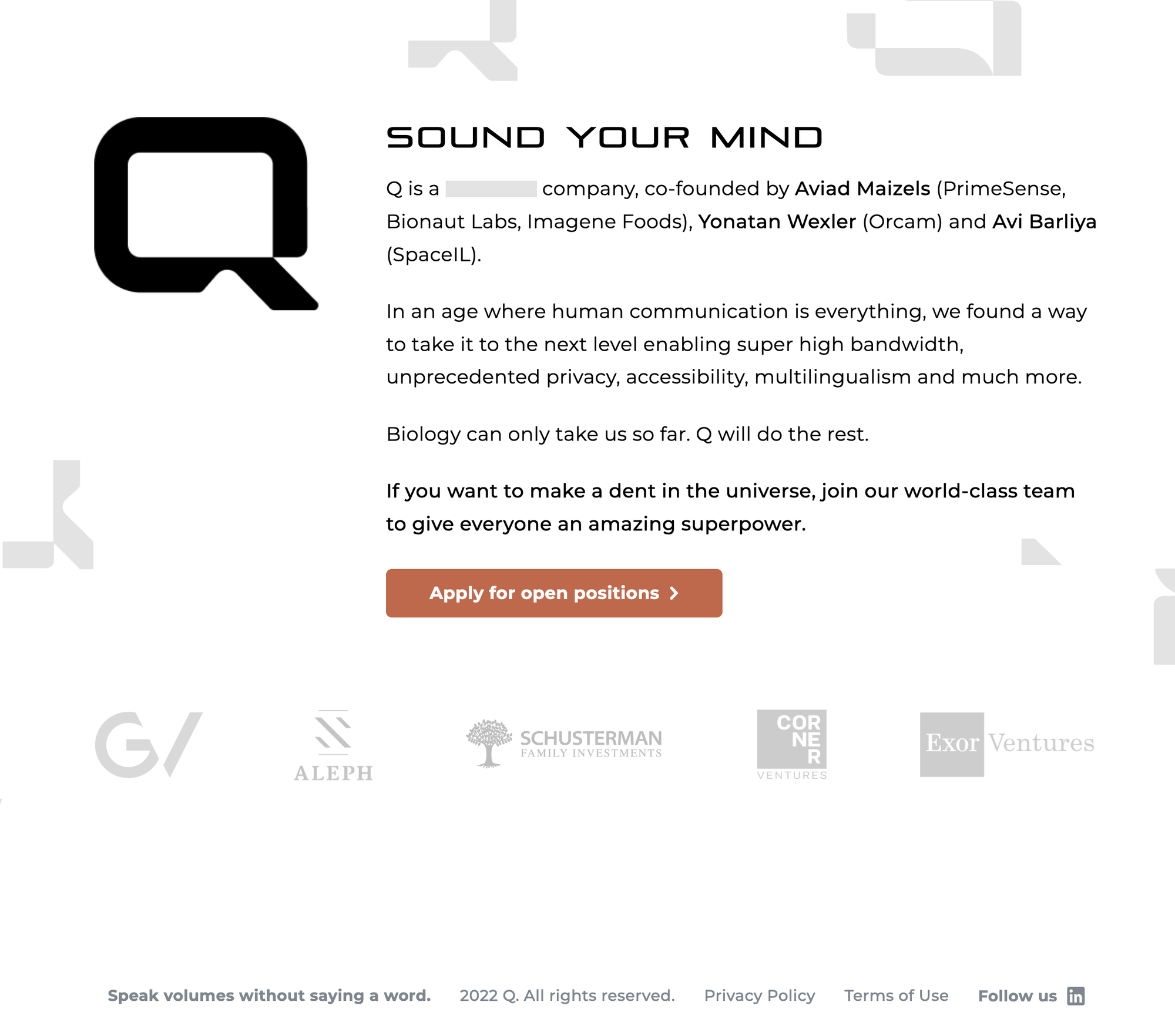 You can see on the screenshot above, Q.ai didn't reveal what kind of company they were. They talk about communication but it's all pretty vague.