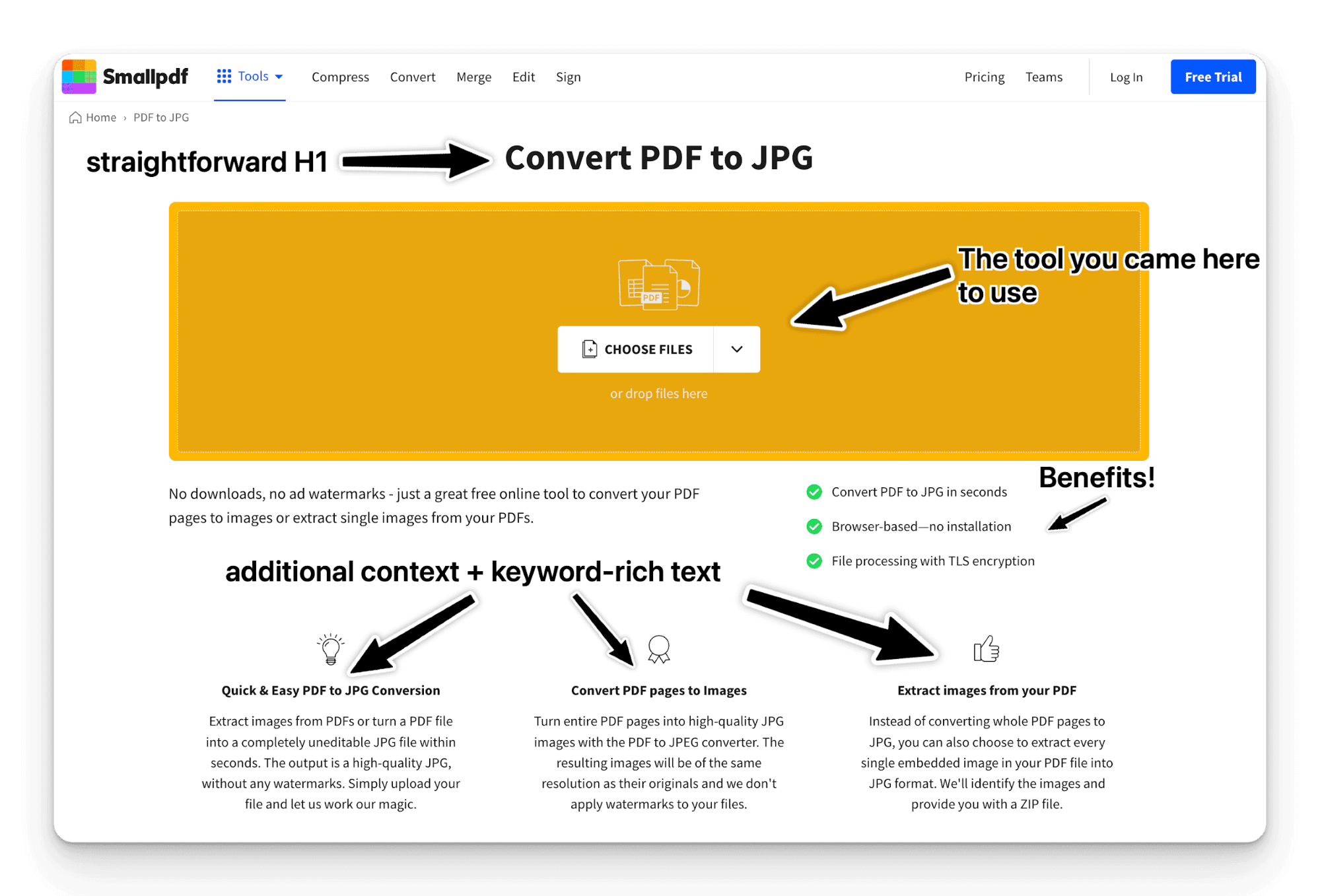 Look at this page they're ranking in the top spot for the keyword "PDF to JPG" (almost 250k s/m!)
