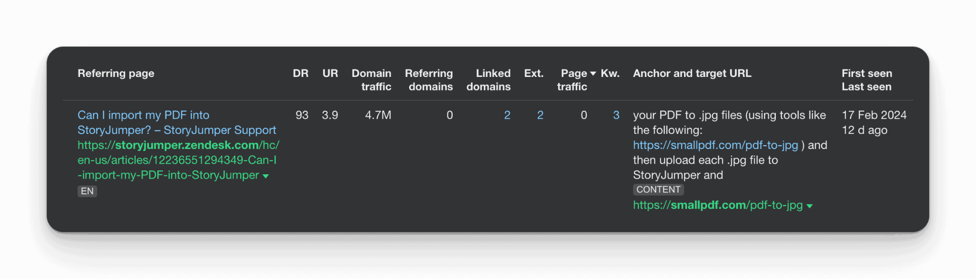 It doesn't hurt that the page has picked up a TON of natural links, like this one from ZenDesk, where a support ticket for a ZenDesk user suggest someone use a PDF to JPG tool: