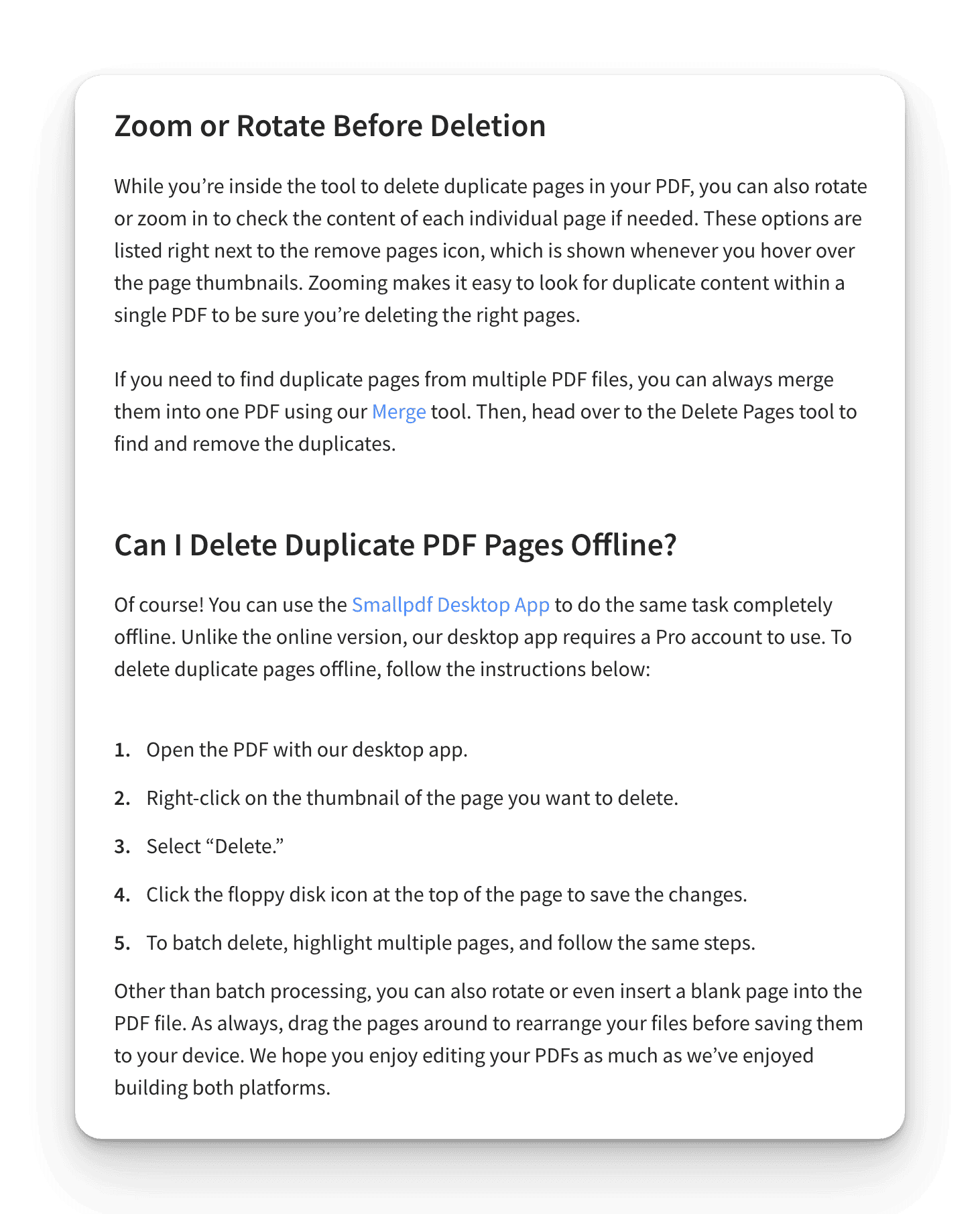 But this is like... useful, next-step questions about this specific workflow if you're looking to delete pages from a PDF.